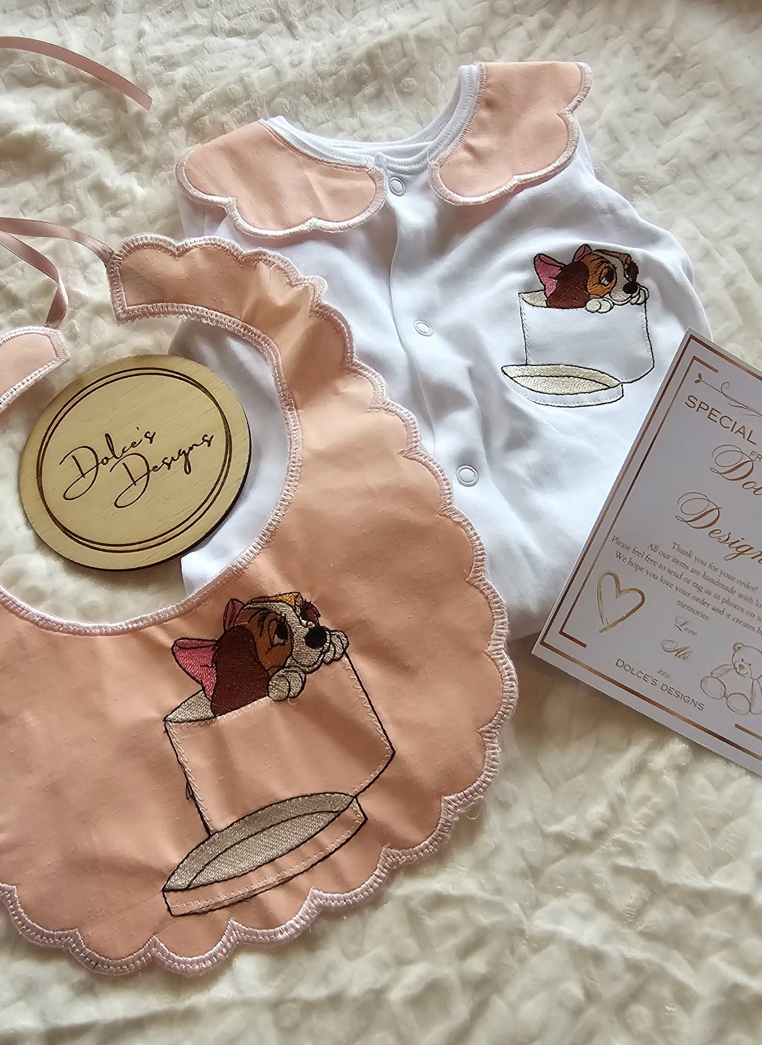 Dress your little lady in this charming babygrow and matching bib set, featuring eye-catching red and gold collars. Perfect for keeping your baby cozy and stylish from day one, this playful duo adds a splash of festive color to any outfit. Ready to post and sure to make every cuddle extra special!